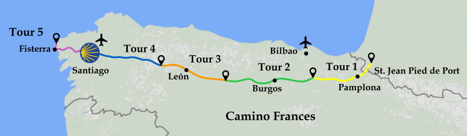 Der Camino Frances ist die weltweit beliebteste Pilgerroute nach Santiago de Compostela. Die tolle Infrastruktur, das reiche kulturelle Erbe Nordspaniens und die zahlreichen, spannenden Mitpilger machen diese Route zu einem absoluten Highlight. Unterschiedlichste Regionen passiert der Camino Francés und führt durch Berge, Wälder, grüne Weinregionen und weite Hochebenen. Hier können Sie mehr über die Geschichte des Camino Francés lesen.