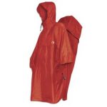 Möglichkeit 2: Ein größerer Regenponcho wird über Körper und Rucksack getragen. Von oben ist damit alles regendicht und von unten ist für Belüftung gesorgt. Außerdem kann man in den Regenpausen, die evtl. sehr schwül sein können, den Poncho einfach beim Gehen über den Kopf nach hinten auf den Rucksack schieben. An den Beinen trägt man bei starkem Regen Regenhose oder auch nur Regengamaschen. Der Nachteil eines Regenponchos auf dem Jakobsweg ist die etwas größere Windanfälligkeit. Regenkleidung im PilginoShop